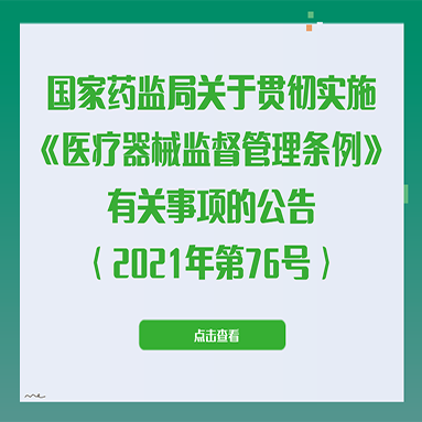 开始施行 | 国家药监局关于贯彻实施《医疗器械监督管理条例》有关事项的公告(2021年第76号)
