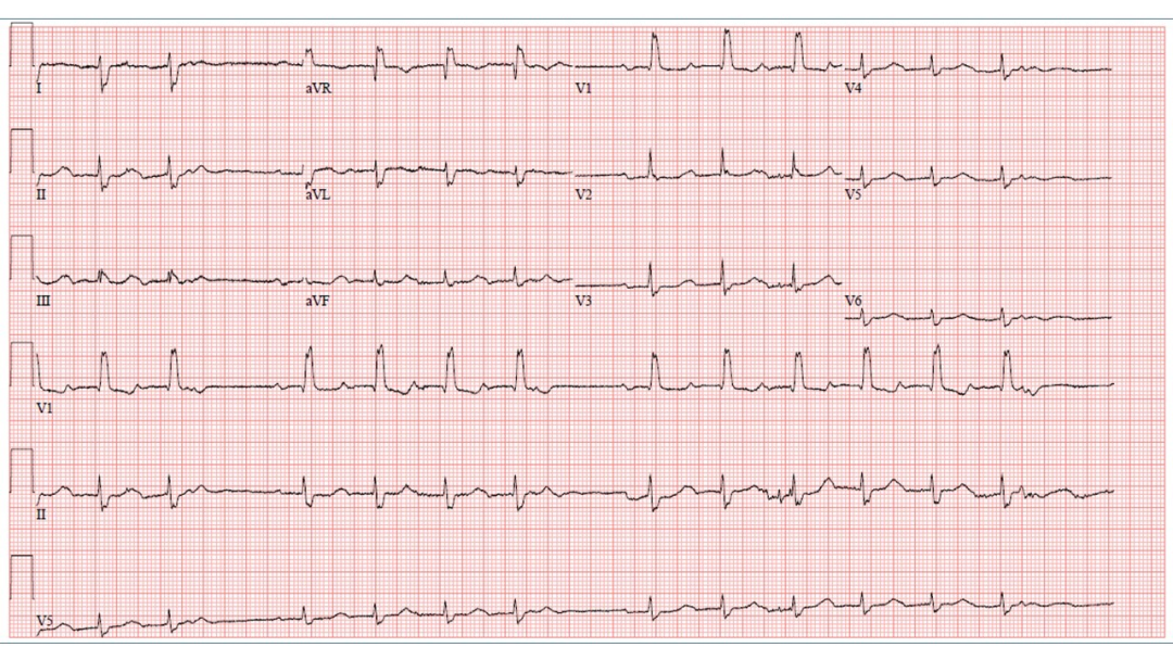 严重缺血性心肌病伴心律失常的76岁老年男性,ACC心电图经典病例