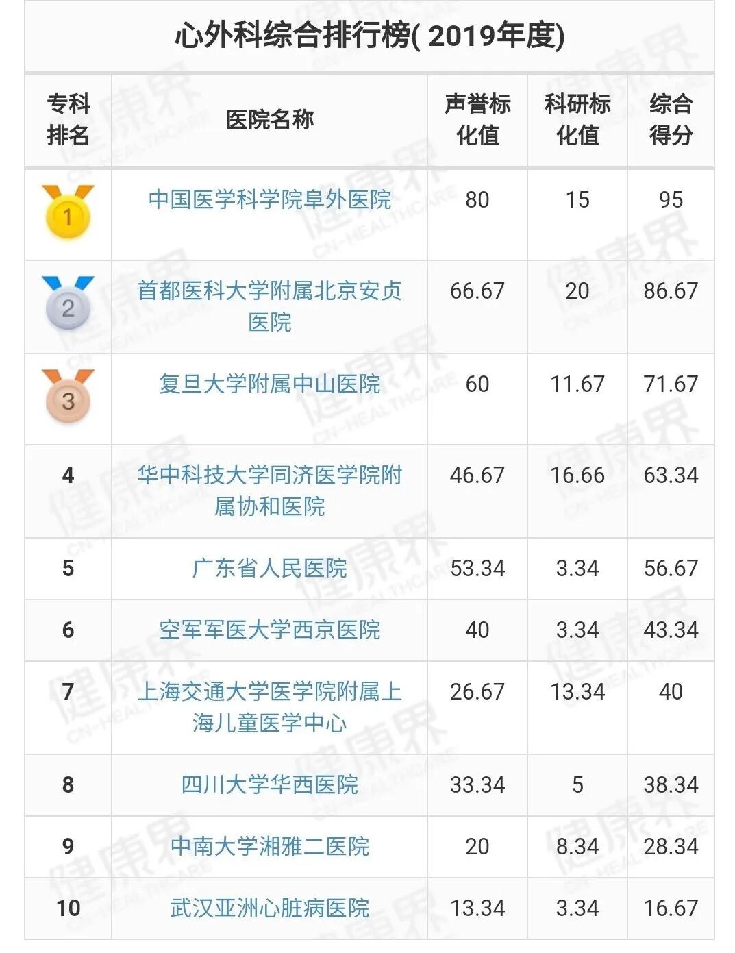 【喜报】阜外医院连续11年蝉联“中国医院专科排行榜”心血管病、心外科专科榜首