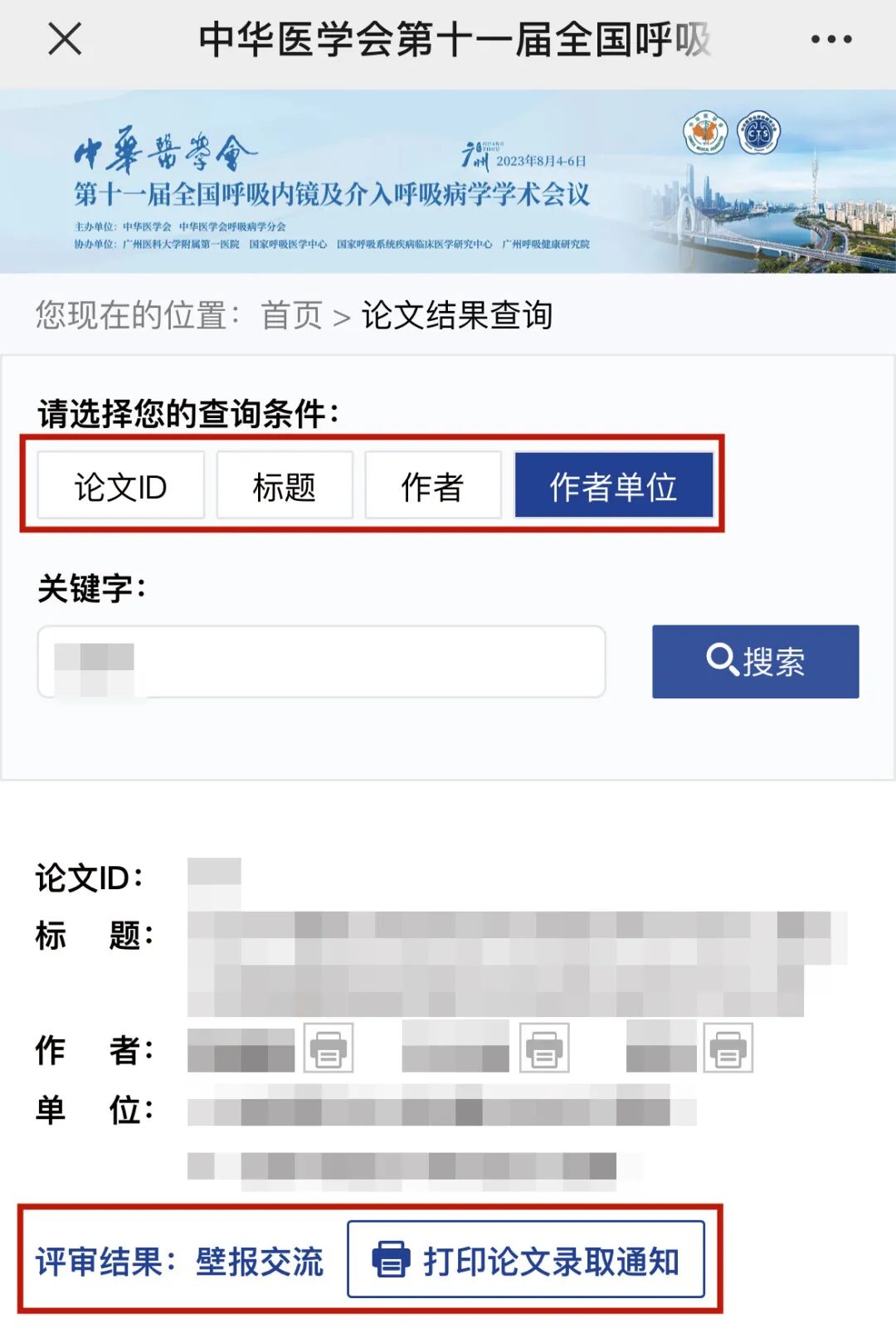 论文评审结果查询 | 中华医学会第十一届全国呼吸内镜和介入呼吸病学学术会议