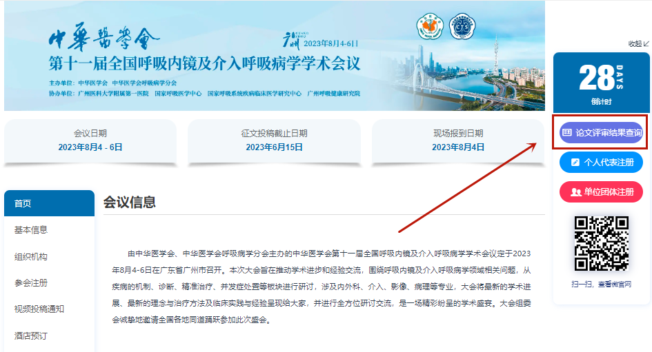 会议官网中华医学会第十一届全国呼吸内镜和介入呼吸病学学术会议 时间:2023/08/04~08/06 地点:广州 进入会议