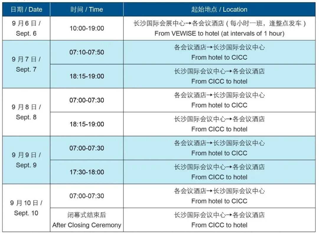 备注 :班车前车窗放置有大会统一印制的车牌,请注意识别。具体发车时间请以酒店大厅摆放的班车时刻表为准。