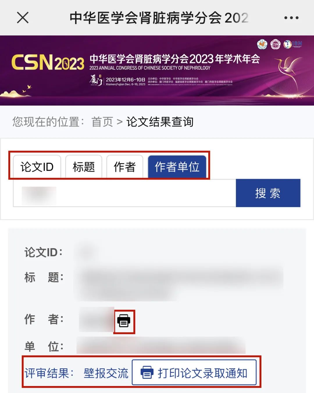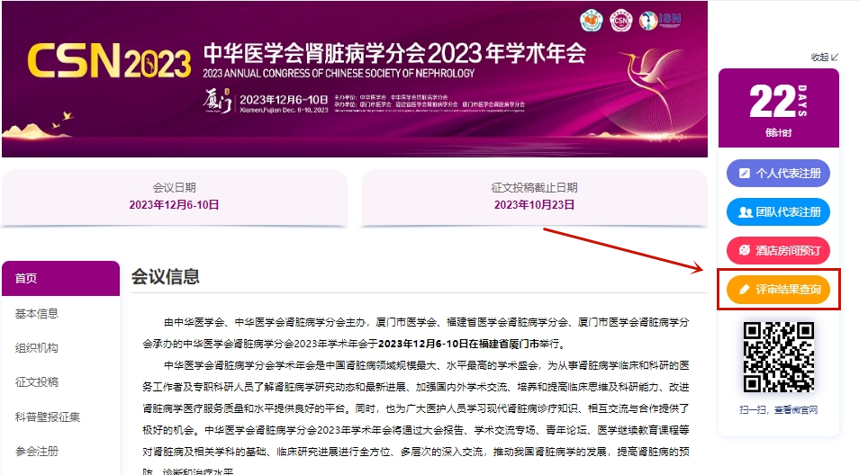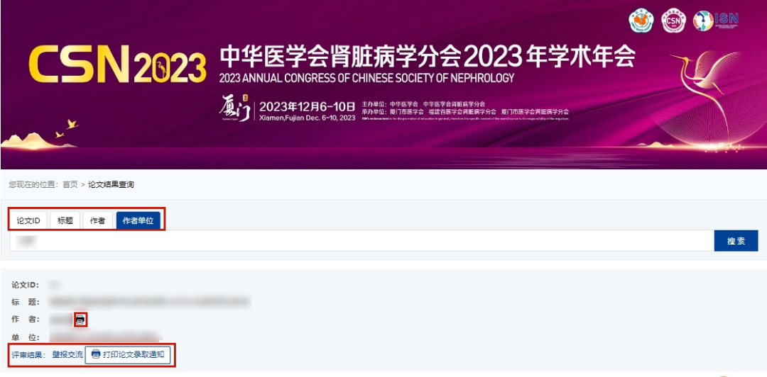 论文评审结果查询 | 中华医学会肾脏病学分会2023年学术年会