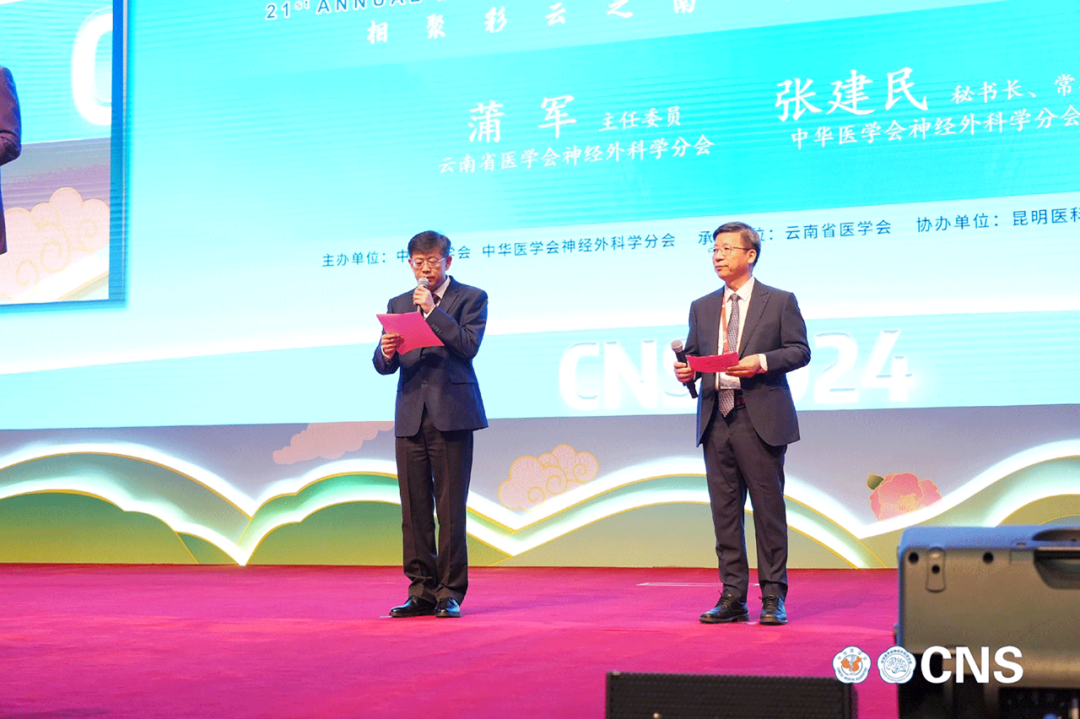 开幕式由昆明医科大学第二附属医院蒲军教授、浙江大学医学院附属第二医院张建民教授主持。出席会议的重要嘉宾有:昆明理工大学季维智院士,首都医科大学附属北京天坛医院赵继宗院士,复旦大学附属华山医院周良辅院士,首都医科大学附属北京天坛医院江涛院士,中华医学会王大方副秘书长,云南省卫生健康委员会党组书记、主任姜旭,云南省医学会副会长兼秘书长舒方,昆明医科大学夏雪山校长,昆明医科大学第二附属医院曾勇院长,昆明医科大学原校长冯忠堂教授,首都医科大学宣武医院党委书记管仲军教授,神经外科学分会主任委员王硕教授,前任主任委员张建宁教授,候任主任委员毛颖教授,世界华人神经外科协会主席张亚卓教授,中国医师协会神经外科医师分会贾旺教授等。王硕教授、曾勇教授、夏雪山校长、姜旭书记、王大方副秘书长分别在开幕式上致辞。