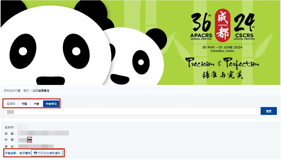 论文评审结果查询 | 第三十六届亚太白内障及屈光手术医师学会年会暨中华医学会第二十四届白内障及屈光手术学术会议