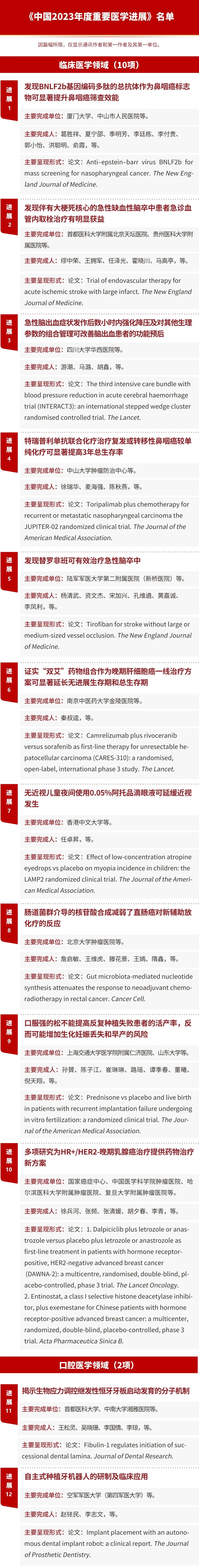 重磅发布 | 中国医学科学院发布《中国21世纪重要医学成就》和《中国2023年度重要医学进展》