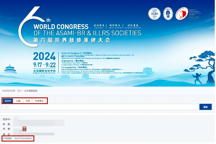 论文评审结果查询 | 第六届世界肢体重建大会(北京)