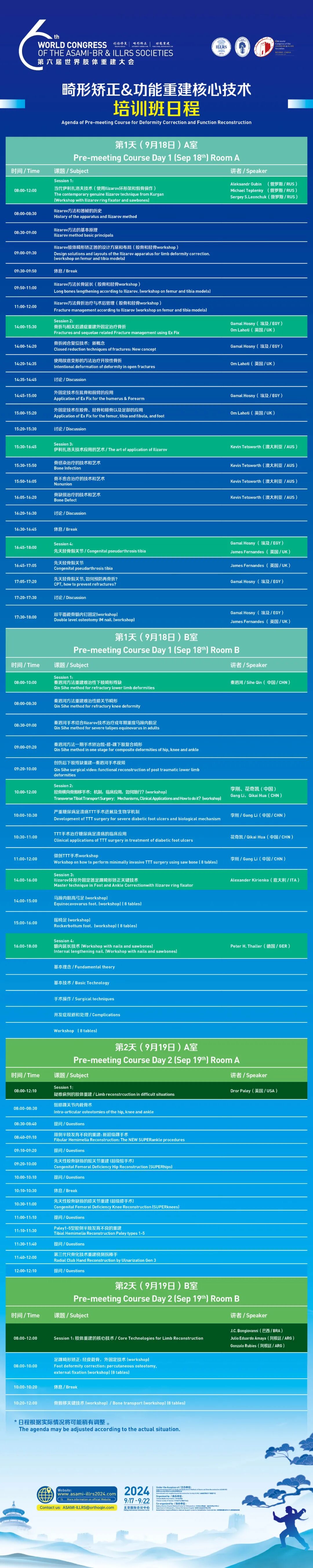 畸形矫正&功能重建核心技术培训班日程 | 第六届世界肢体重建大会(北京)