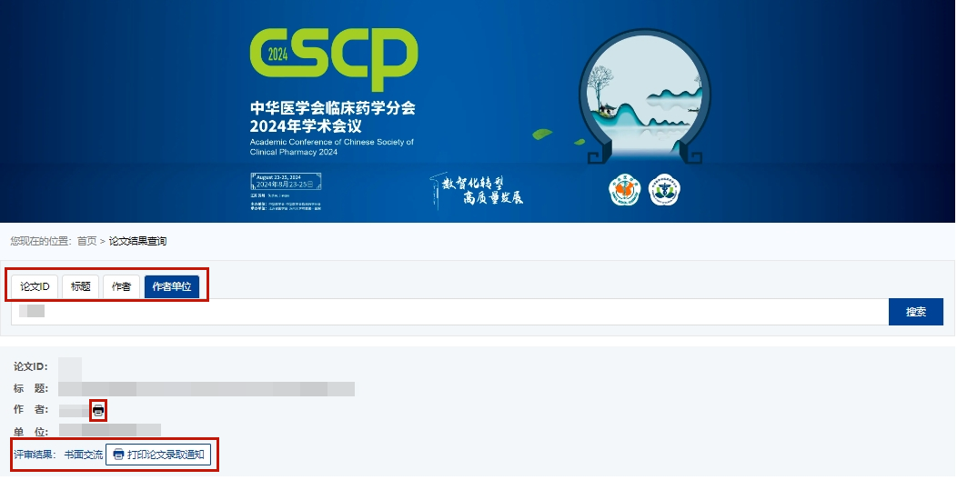 论文评审结果查询 | 中华医学会临床药学分会2024年学术会议