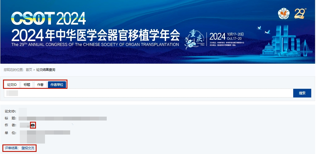 论文评审结果查询 | 2024年中华医学会器官移植学年会